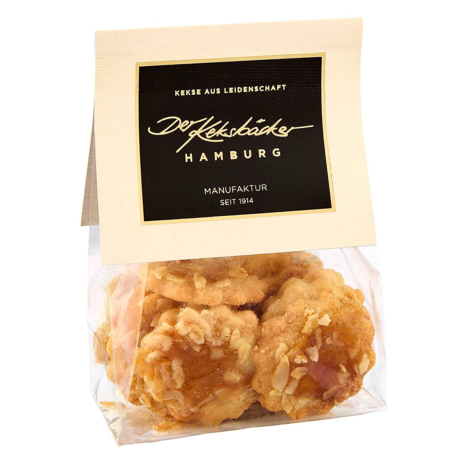 Ein Keks wie aus Omas Küche: Unser Apfel-Butterkeks vereint zartes Buttergebäck mit regionaler Apfelkonfitüre, veredelt mit gerösteten Mandelblättchen und einer Prise Zimt & Zucker. Im Ofen goldbraun gebacken entfaltet sich ein Duft, der Kindheitserinnerungen weckt.