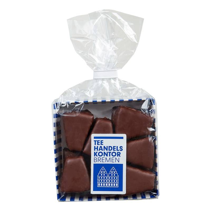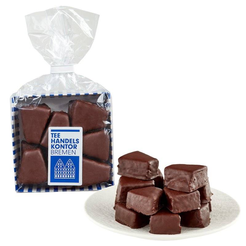 Zarte, in Rum getränkte Baumkuchenstücke mit besten Zutaten in mundgerechten Portionen. Dick umhüllt von feiner, knackiger Edelbitterschokolade sind die Gebäckstückchen ein klassischer Genuss zu frisch gebrühtem Tee. SAISON HERBST/WINTER