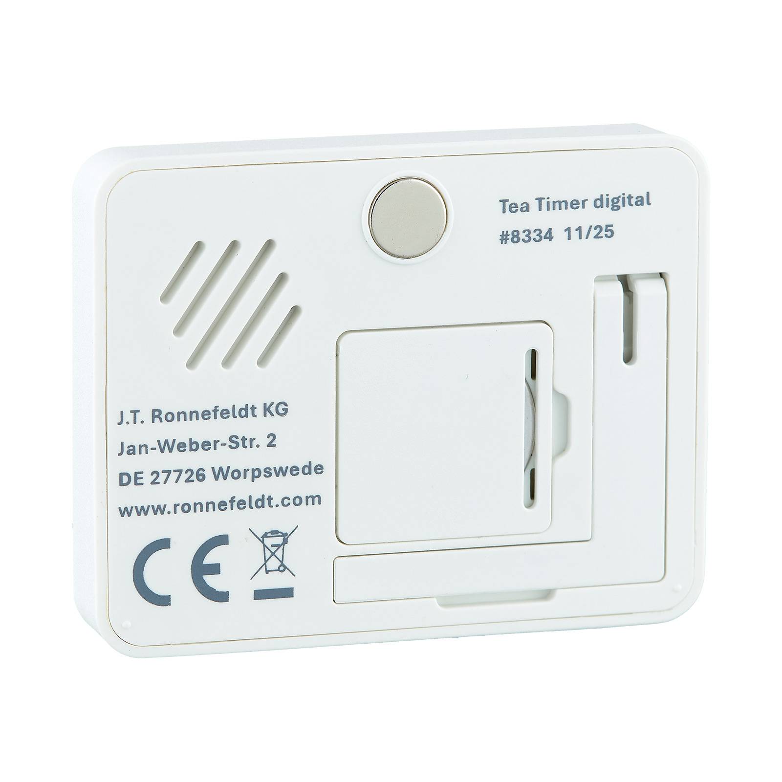 Für den optimalen Teegenuss ist die richtige Ziehzeit insbesondere bei grünem und schwarzem Tee ausschlaggebend. Mit dem digitalen Ronnefeldt Tea Timer richten Sie Ihre gewünschte Zeit einfach und genau ein. Der Timer lässt sich flexibel einstellen, steht dank ausklappbarem Standfuß stabil auf dem Tisch und kann durch den Magneten auf der Rückseite auch an Kühlschrank oder anderen metallischen Flächen befestigt werden.
